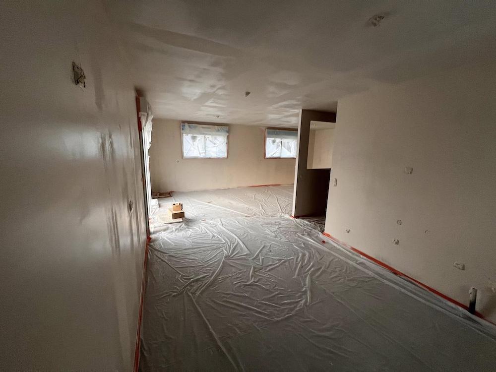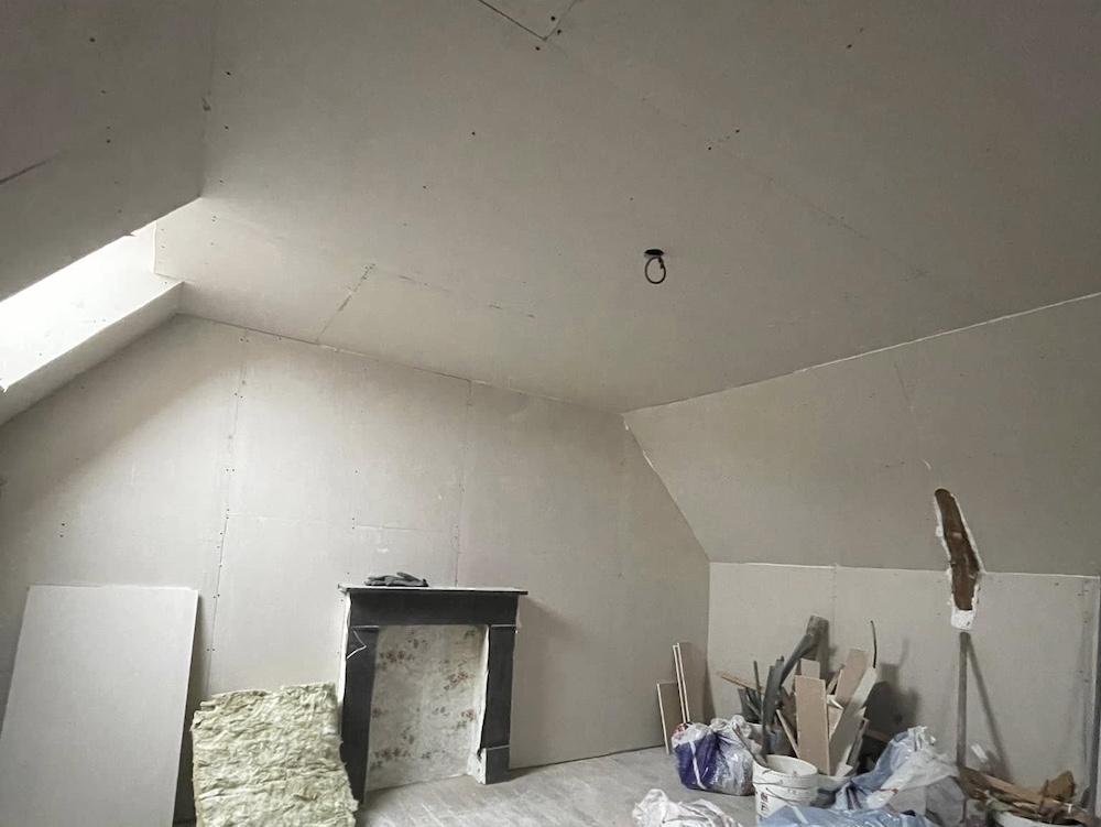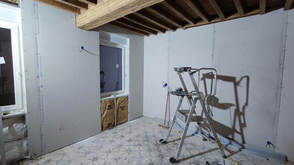 - Rénovation d’un salon avec murs fissurés et cloison en placo à ratisser